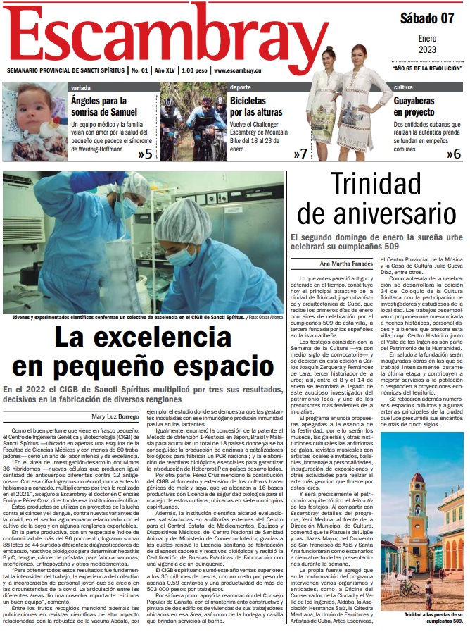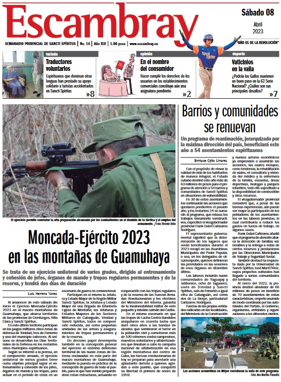 Descarga los PDF de las últimas ediciones impresas de Escambray del año 2023, semanario con circulación los sábados en toda la provincia de Sancti Spíritus, Cuba.