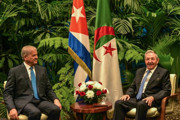 El presidente cubano Raúl Castro Ruz recibió este jueves al excelentísimo señor Abdelmalek Sellal, Primer Ministro de la República Argelina Democrática y Popular, quien realiza una visita oficial a Cuba