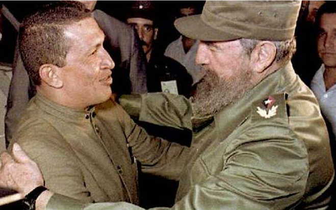 Fidel y Chávez, su primer abrazo, histórico y memorable, escribió Díaz-Canel en su cuenta en Twitter donde adjuntó un link a un artículo sobre el tema divulgado en el portal web Cubadebate.