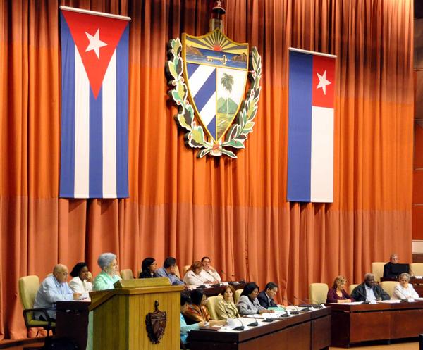 Gladys Bejerano presentó un informe de su organismo a los diputados al parlamento cubano.