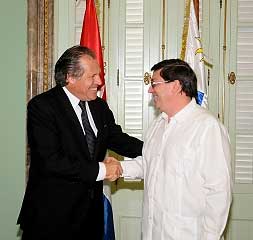 Los cancilleres de Cuba, Bruno Rodríguez, y de Uruguay, Luis Almagro.