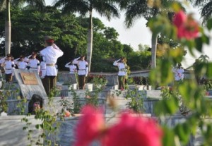 Ofrendas florales del compañero Fidel, líder histórico de la Revolución; del presidente de los Consejos de Estado y de Ministros, General de Ejército Raúl Castro Ruz; del pueblo de Cuba y de los familiares de los integrantes del Frente, fueron colocadas junto a la llama eterna del Mausoleo, erigido justamente frente al antiguo cuartel que rindieran las fuerzas rebeldes el 31 de diciembre de 1958.