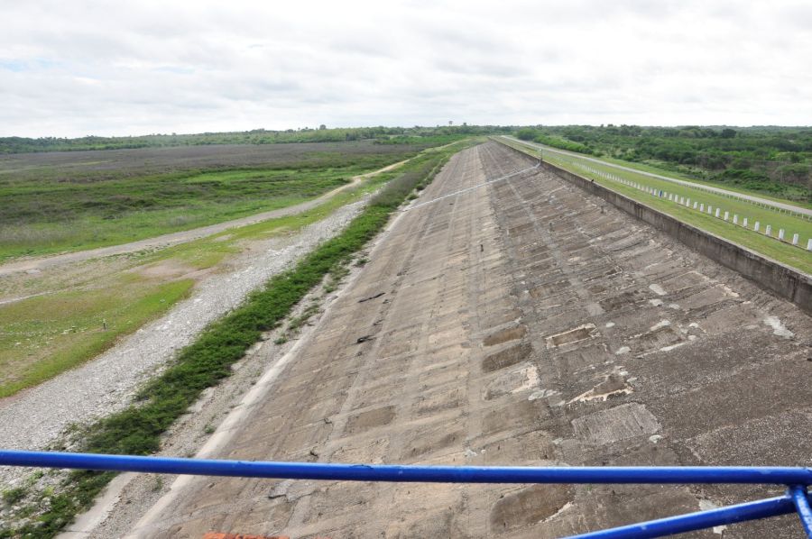 Desde el 7 de noviembre del 2013 no se vierte agua por el aliviadero de seis compuertas, una fiel expresión de cuánto han disminuido los niveles de lluvias en estos últimos años en el área de la cuenca hidrográfica del río Zaza. (Foto: Vicente Brito/ Escambray)