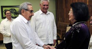 Las partes dialogaron sobre los entrañables lazos de hermandad que unen a los dos pueblos, partidos y gobiernos. (Foto: PL El primer secretario del Comité Central del Partido Comunista de Cuba, Raúl Castro, y el presidente cubano, Miguel Díaz-Canel, recibieron este martes a la vicepresidenta de Vietnam, Dang Thi Ngoc »