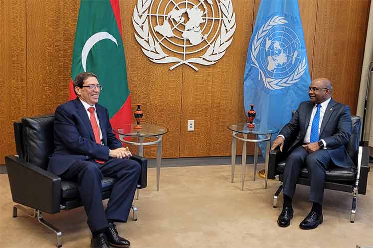 El canciller cubano, Bruno Rodríguez, felicitó este jueves y deseó éxitos en su mandato al presidente del 76 período de sesiones de la Asamblea General de la ONU, el diplomático de Maldivas, Abdulla Shahid.