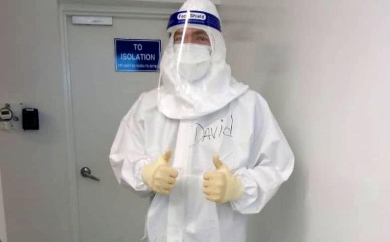 En la tinta negra sobre el traje blanco anticovid puede leerse: “David”. La foto, tomada minutos antes de entrar a la Zona Roja del hospital Harrison Point, en la parroquia de San Lucy, en Barbados, es apenas el primer trazo del día que comienza para el especialista de primer grado en Medicina Intensiva y Emergencia que por horas pone la ciencia y el corazón a favor de la vida.