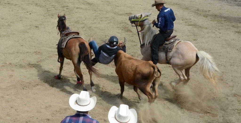 Coleo de novillo, una de las modalidades más difíciles del rodeo.