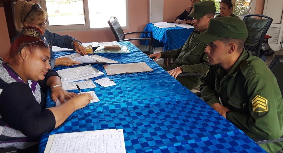 Un numeroso grupo de jóvenes sargentos y soldados de una unidad de Tropas Especiales de las FAR, de la Región Militar Sancti Spíritus, es entrevistado por el Grupo de Trabajo Multidisciplinario, encargado del proceso de reinserción laboral de los jóvenes que en fechas próximas serán desmovilizados, tras cumplir el Servicio Militar Activo. Escambray dialoga con algunos de ellos.