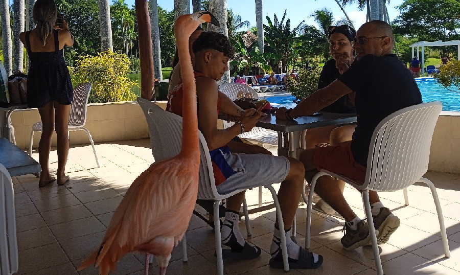 “Esta es una de las mayores atracciones del lugar, porque nunca se ha visto a un flamenco que come pan, pizza o cualquier otro alimento que se le ofrece; sin agredir a nadie y hace piruetas para que lo aplaudan. A los niños les encanta”; refiere Oneida García, una vacacionista residente en Florencia, quien disfrutó de un pasadía en la emblemática instalación perteneciente al Grupo Hotelero Islazul, de la provincia espirituana.