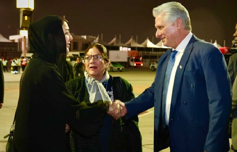 Tras 16 horas de travesía que recorrió unos 13 000 kilómetros, el Jefe de Estado -representando a la mayor de las Antillas, la cual funge como presidente pro témpore del Grupo de los 77 y China– llega a la nación árabe para asistir, también, a la 28va Conferencia de las Partes de la Convención Marco de Naciones Unidas sobre Cambio Climático, que sesionará aquí del 30 de noviembre al 12 de diciembre.