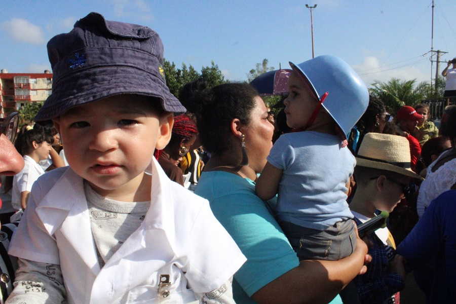 Cada centro educacional salió al desfile con iniciativas propias, portando banderas, carteles y con disfraces típicos y tradicionales que le dieron más colorido y alegría a la marcha pioneril que concluyó bien arribita con la actuación de La Colmenita Dueños de la Felicidad.