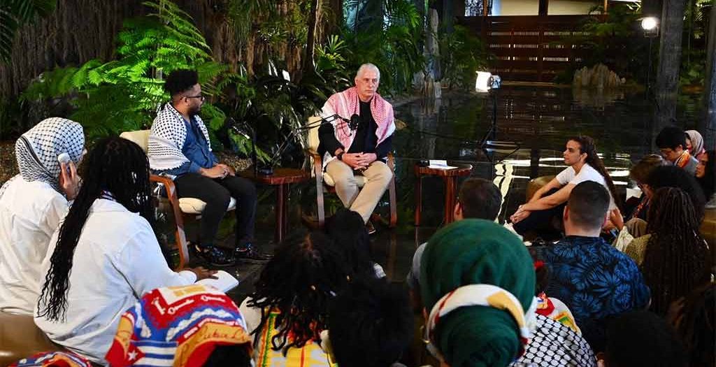 En un encuentro con jóvenes estadounidenses, en el Palacio de la Revolución (sede del Ejecutivo), el mandatario recordó que ese país árabe lleva más de 70 años sometido a un proceso de exterminio gradual, que ahora se ha intensificado.