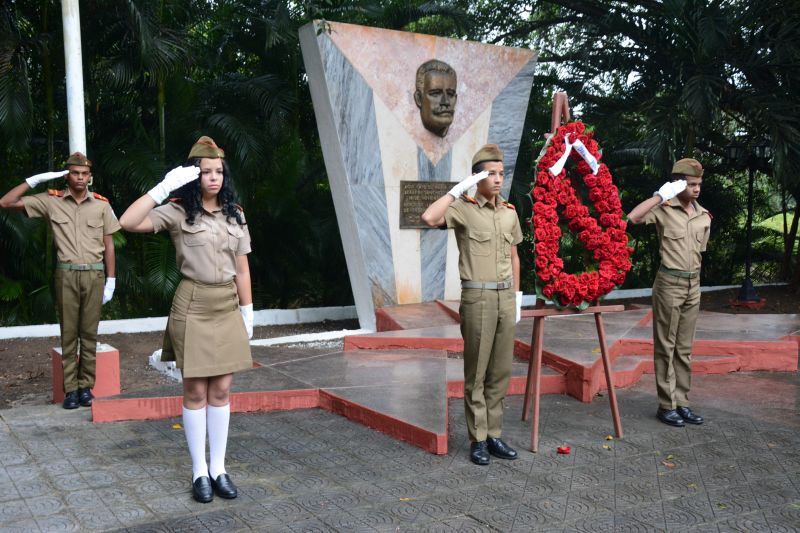 Estudiantes de Escuela Militar Camilo Cienfuegos del territorio protagonizaron la ceremonia marcial en recordación a Serafín y colocaron una ofrenda floral en el monumento.