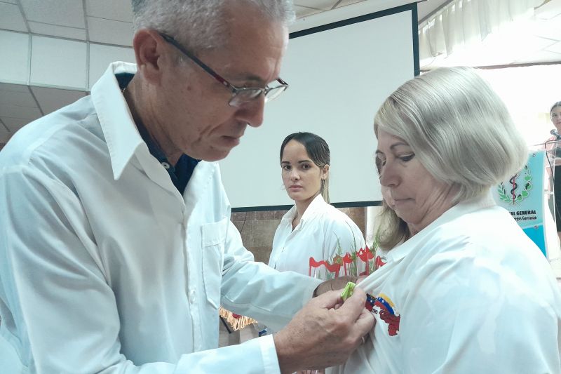 Ante una representación de médicos, enfermeros y tecnólogos, Gallo Matos transmitió una felicitación a quienes laboran en uno de los frentes más afectados debido al histórico bloqueo impuesto por los Estados Unidos.