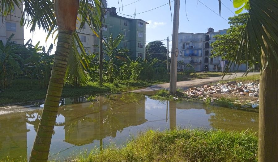 Escambray recorrió varias calles del lugar y descubrió que el salidero del líquido brota desde una cisterna situada entre los edificios 3, 4 y 13, donde se encuentra, además, el Consultorio N0. 11 del Médico de la Familia, perteneciente a la manzana 470 del Policlínico Sur.