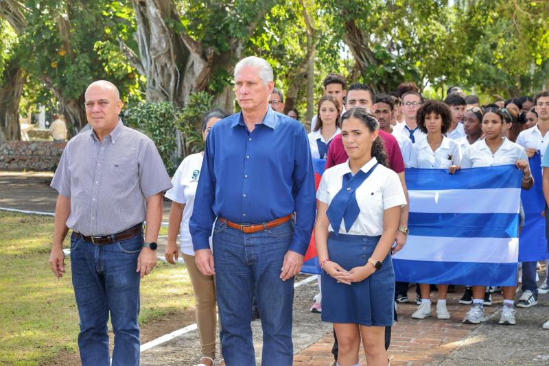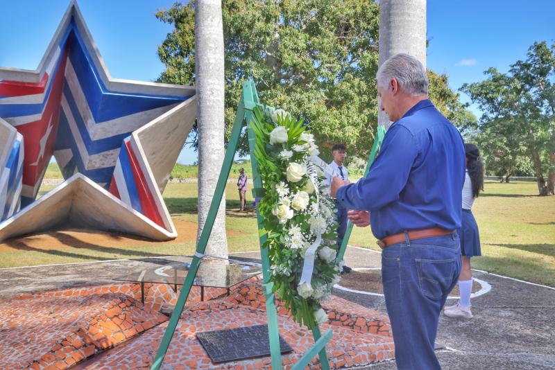 Panchito «es una expresión, es un símbolo de lealtad, es un símbolo de fidelidad, pero también es un símbolo de coraje y valentía». Y estas —enfatizó Díaz-Canel— son cosas que tenemos que tener muy claras; saber «cómo esos hombres estaban dispuestos a dar la vida por la independencia, por la libertad del país, porque en estos tiempos que nos agreden tanto, en estos tiempos donde vemos un despliegue militar ofensivo tremendo por parte del ejército y el Gobierno de los Estados Unidos en el área del Caribe, atentando contra la Revolución venezolana, pero atentando contra la paz y la seguridad del área, uno también tiene que empezar a sacar su visión y su convicción de que por esta Revolución estamos dispuestos a dar hasta la vida, y las razones por las que estamos dispuestos a dar nuestra vida, entre otras, tienen que ver con el ejemplo de esos héroes y de lo que fue capaz de hacer Panchito con 20 años de edad, como han sido capaces de hacerlo otros, incluso con menos edad, en nuestra historia, y como seremos capaces de darla, ustedes y nosotros».