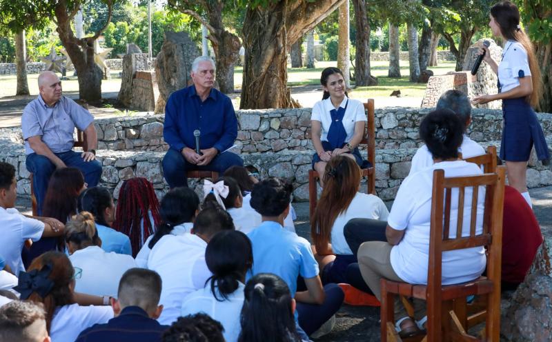 Entre otras reflexiones junto a los jóvenes, el Presidente también compartió criterios sobre el Programa de Gobierno para corregir distorsiones y reimpulsar la economía, y el estudio y aporte que pueden hacer a este el alumnado de la enseñanza media.