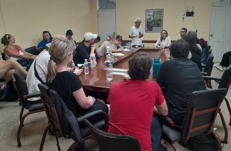Hasta la Universidad de Sancti Spíritus José Martí Pérez (UNISS) llegó la brigada para conversar con sus directivos sobre los desafíos de la Educación Superior cubana. Ariadna Veloso Rodríguez, vicerrectora primera de la institución, compartió con ellos los principios formativos de la universidad y su integración con la sociedad. Algunos brigadistas se interesaron por el funcionamiento de organizaciones estudiantiles y juveniles en la toma de decisiones, así como del impacto del bloqueo en la obtención de materias primas e insumos.