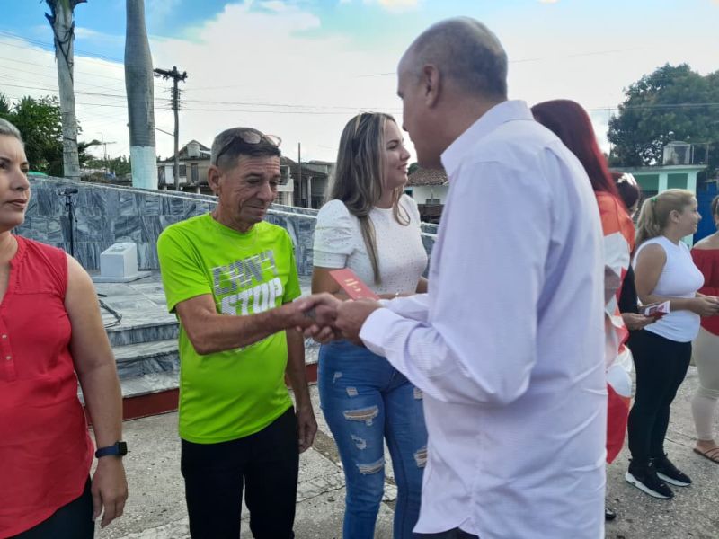 Además, nuevos miembros del Partido y la Unión de Jóvenes Comunistas recibieron los carnés que los acreditan como integrantes de esas organizaciones, de manos de Julio Luis Jiménez López, miembro del Buró Provincial del PCC.