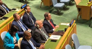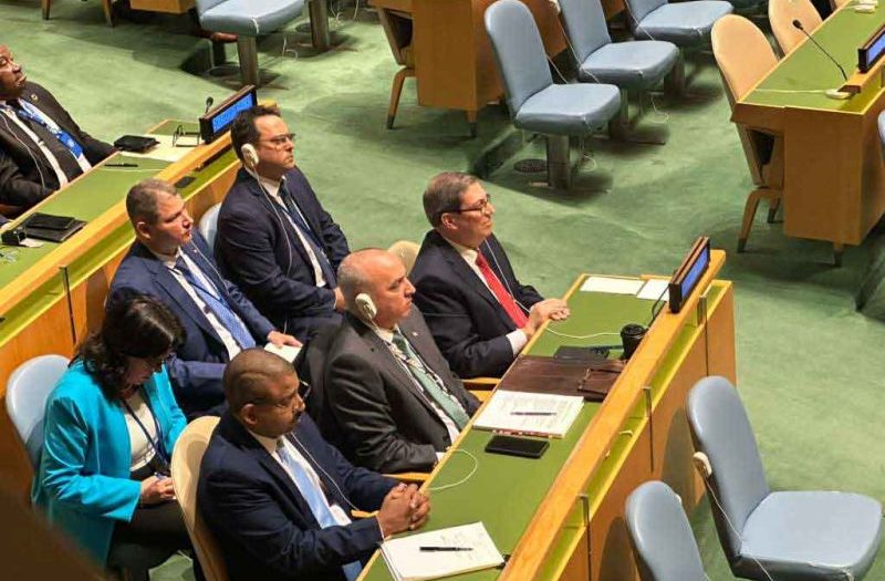 El canciller Bruno Rodríguez encabeza la delegación cubana que se encuentra en Nueva York para participar hasta mañana en la discusión y votación del proyecto de resolución de la Asamblea General que llama levantar el bloqueo de Estados Unidos.