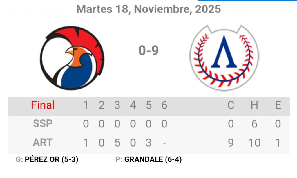 Tras un episodio en calma en el cuarto con Daniel Reyes en el montículo, los artemiseños volvieron a la carga en el quinto frente a Miguel Dávila, al que le anotaron tres para completar el pizarrón y respaldar la excelente actuación de Andy Luis Pérez, quien lanzó las seis entradas del desafío, concluido de forma temprana.