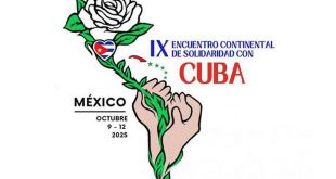 El IX Encuentro Continental de Solidaridad con Cuba comenzará este 9 de octubre en México, con la asistencia de más de 250 delegados de 27 naciones latinoamericanas y España, Líbano y Estados Unidos.