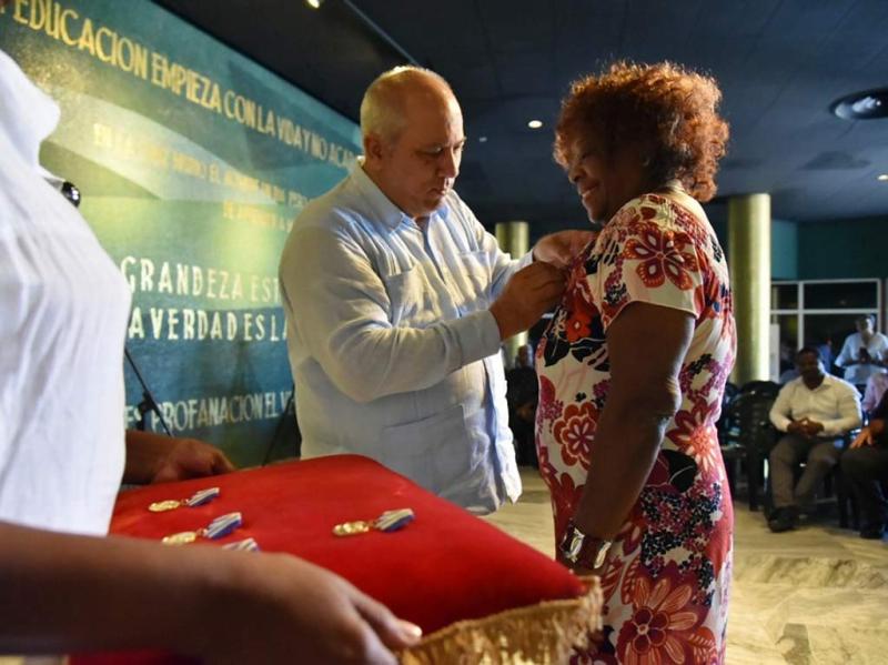 Esta condecoración es un alto honor para nosotros y representa un reto para nuestro trabajo actual y el que vendrá, porque desde el primer día de nuestra labor asumimos el desafío como el acicate primordial, expresó Alicia de las Mercedes Valdés en representación de los condecorados.