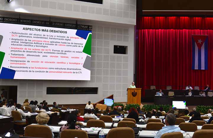 Ambas normas jurídicas fueron presentadas ante la plenaria, reunida por videoconferencia, donde se discutieron la Ley General de Ciencia, Tecnología e Innovación y la Reducción Excepcional del Período de Mandato de los Delegados de las asambleas municipales.