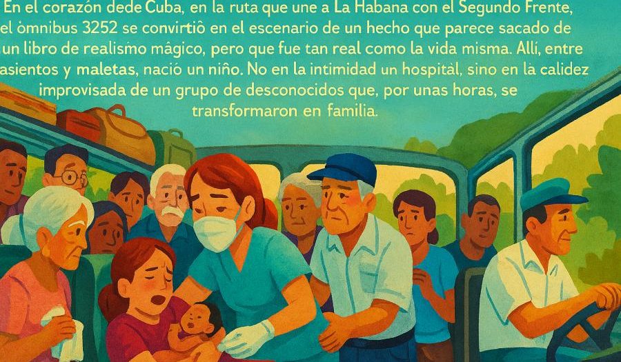 En el corazón de Cuba, en la ruta que une a La Habana con el Segundo Frente, el ómnibus 3252 se convirtió en escenario de un hecho que parece sacado de un libro de realismo mágico, pero que fue tan real como la vida misma. Allí, entre asientos y maletas, nació un niño. No en la intimidad de un hospital, sino en la calidez improvisada de un grupo de desconocidos que, por unas horas, se transformaron en familia.