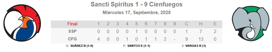 Por su parte, Ciego de Ávila venció 7-4 a Camagüey, mientras el doble programa entre Industriales y La Isla quedó suspendido por lluvia.