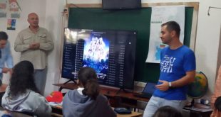El Embajador de la República de Bulgaria en Cuba, Todor Kanchevski, asistió a la presentación de la película El Caso Tesla, en una de las aulas de la escuela secundaria Carlos Echenagusía Peña, de Trinidad.