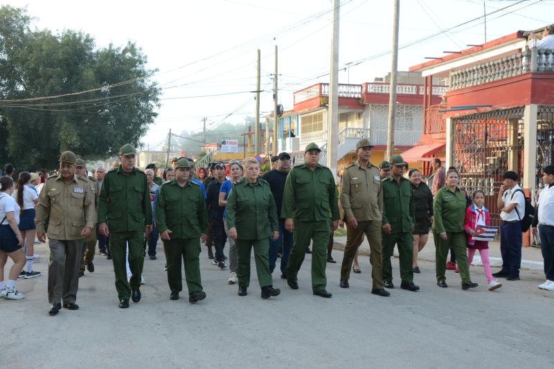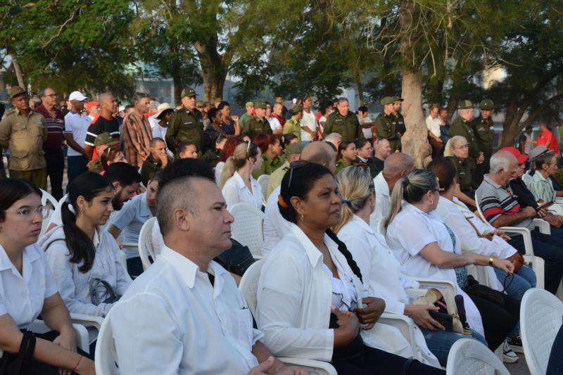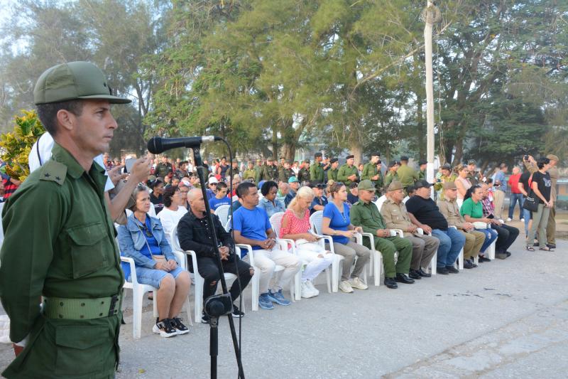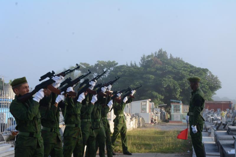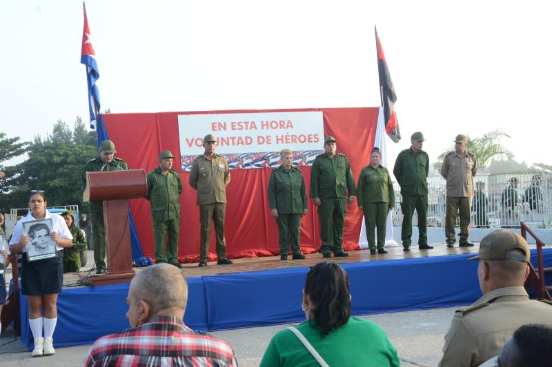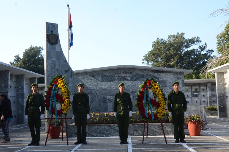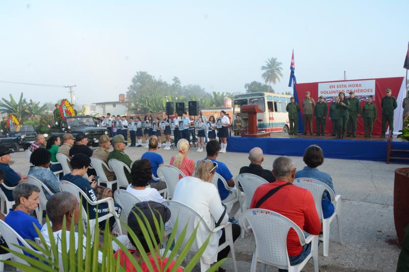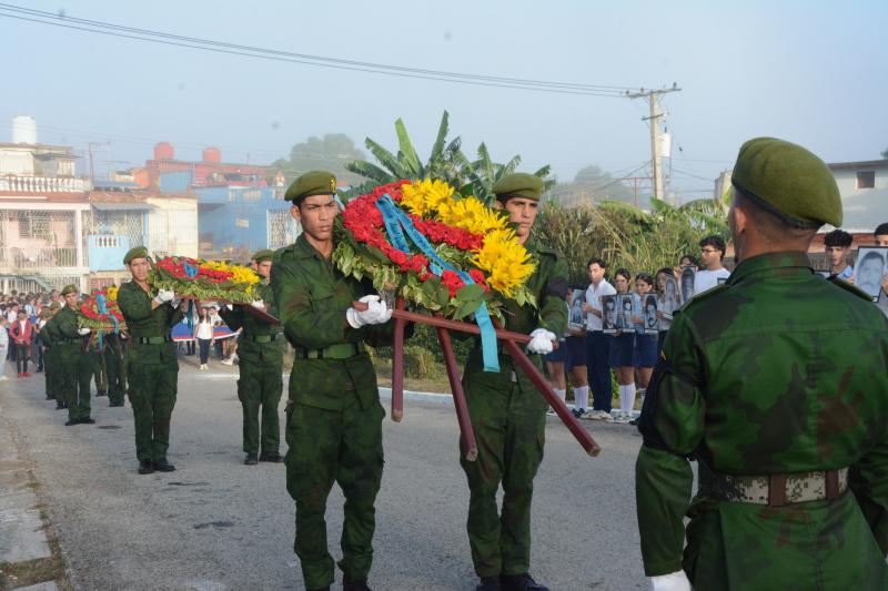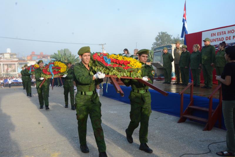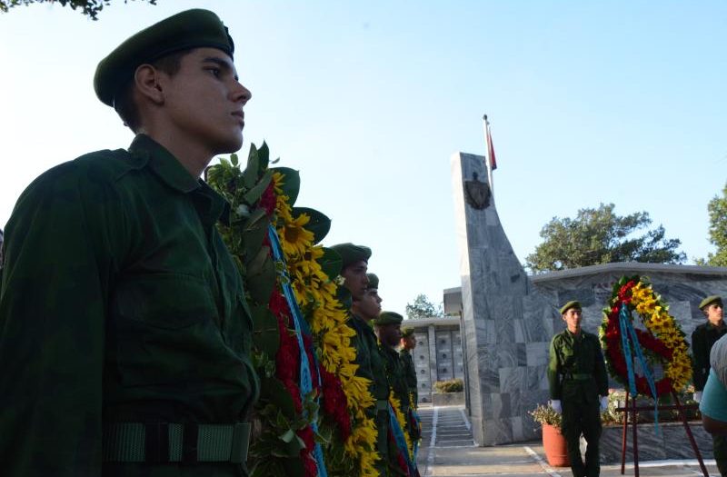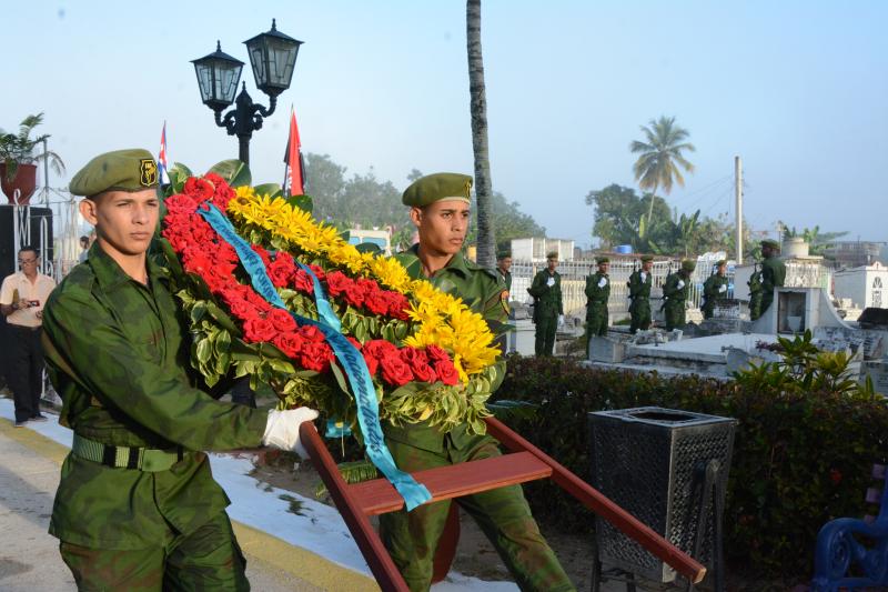 En la ceremonia militar, que estuvo encabezada por las máximas autoridades del Consejo de Defensa Provincial, se colocaron ofrendas florales a nombre de todos los espirituanos en el Panteón de los Caídos