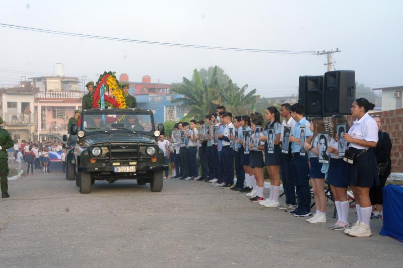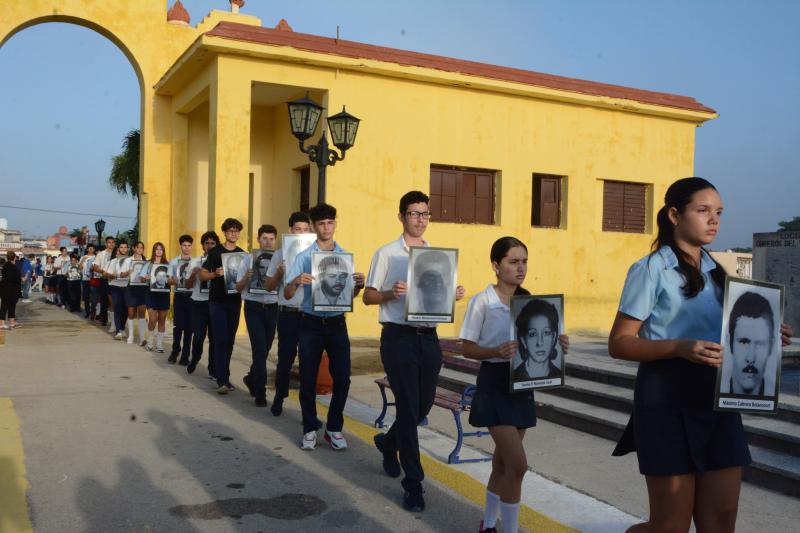 La calle Céspedes, de la ciudad de Sancti Spíritus, vuelve cada 7 de diciembre a congregar a los espirituanos. Hasta el cementerio, un silencio rotundo. Jóvenes portan retratos de los mártires caídos en defensa de otros pueblos.