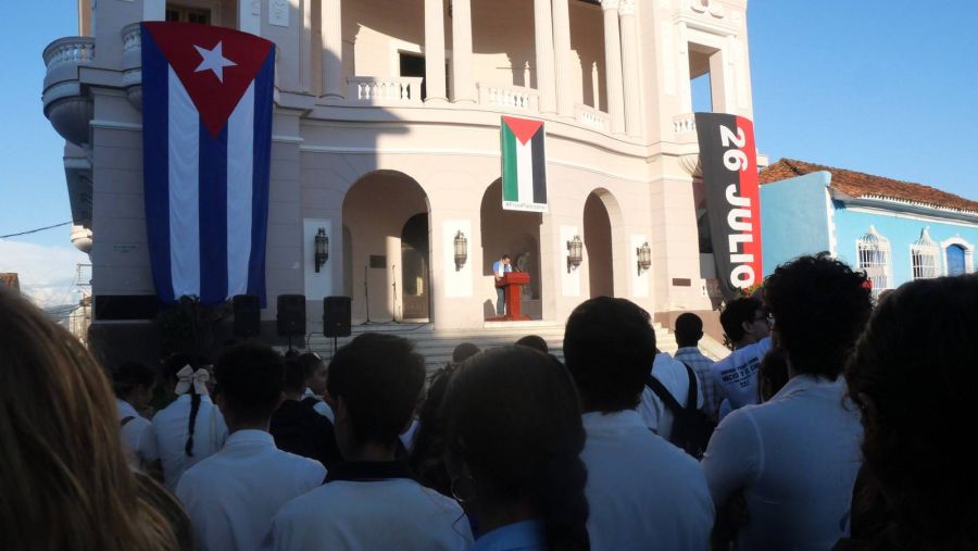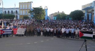 Por su parte, Lester Rodríguez Acosta, presidente del Instituto Cubano de Amistad con los Pueblos en Sancti Spíritus, calificó como catástrofe humanitaria el genocidio que se acomete contra el pueblo palestino. “Esto no es una guerra como quieren hacerlo ver al mundo, es un exterminio contra la población civil en Gaza”, afirmó. “El estado israelí ha negado la entrada de cualquier ayuda, como recientemente sucedió con la flotilla de la Libertad”.