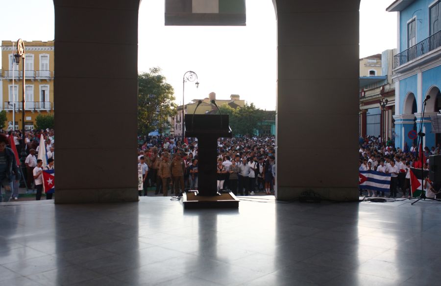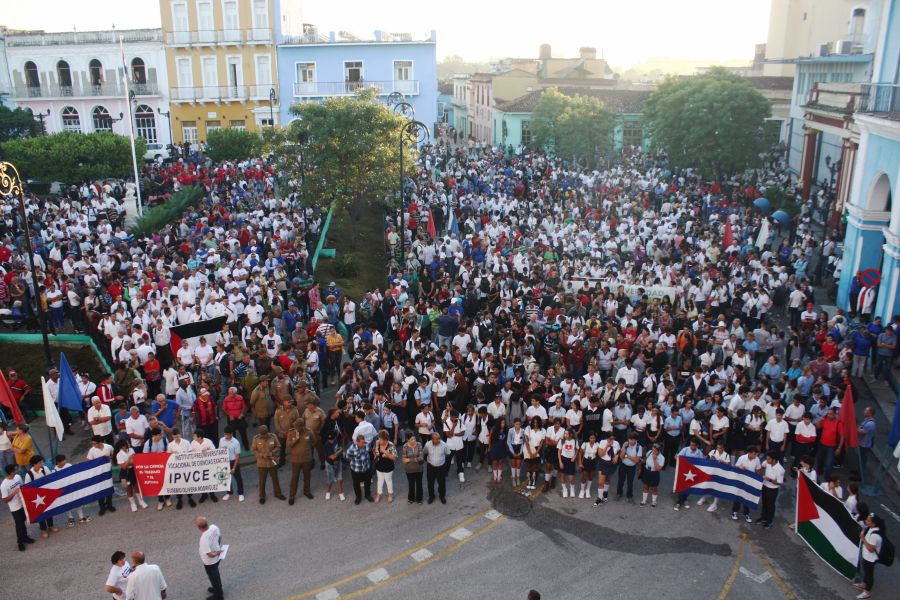 Una Tribuna Antiimperialista tuvo lugar esta mañana en el parque Serafín Sánchez Valdivia de la ciudad de Sancti Spíritus, donde se dieron cita cientos de espirituanos para alzar su voz en apoyo a la causa palestina y en repudio al holocausto que vive ese hermano pueblo.