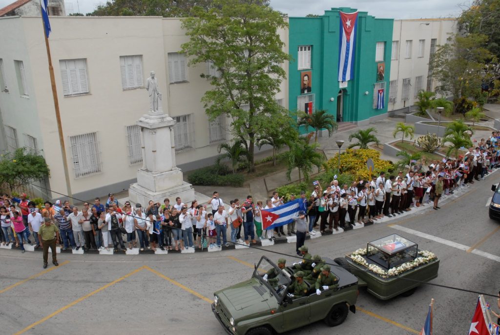 Era jueves, primero de diciembre de 2016. Volvía a entrar al parque Serafín Sánchez, de Sancti Spíritus, en su camino hacia Santiago de Cuba. Lloraba la mañana; era la misma llovizna que lo saludó aquella madrugada del 6 de enero de 1959, cuando desde los balcones de la entonces Sociedad El Progreso, prodigó elogios, vueltos a retoñar en la historia: