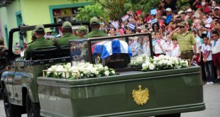 Era jueves, primero de diciembre de 2016. Volvía a entrar al parque Serafín Sánchez, de Sancti Spíritus, en su camino hacia Santiago de Cuba. Lloraba la mañana; era la misma llovizna que lo saludó aquella madrugada del 6 de enero de 1959, cuando desde los balcones de la entonces Sociedad El Progreso, prodigó elogios, vueltos a retoñar en la historia:
