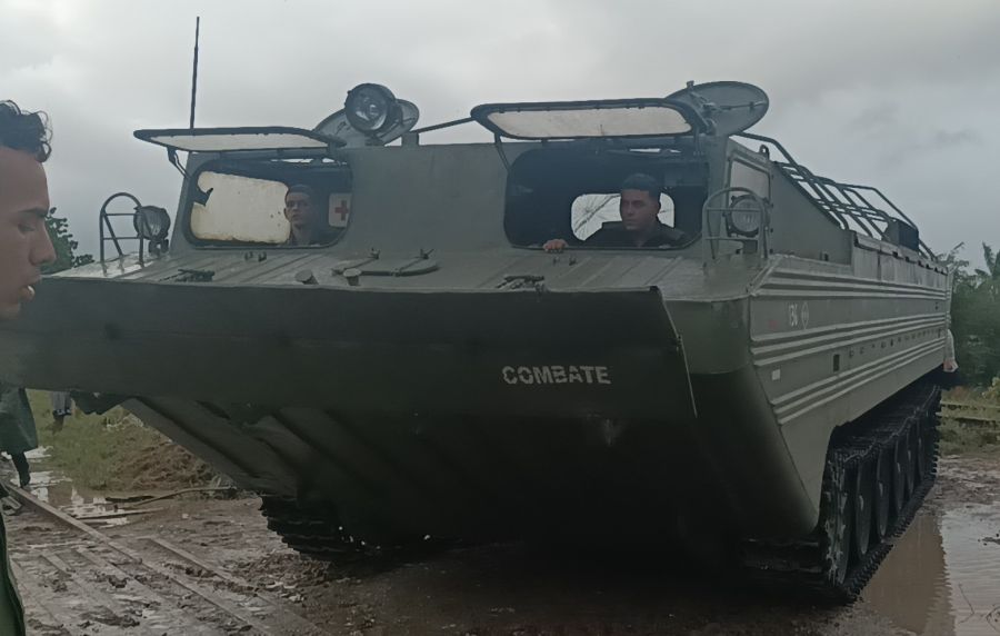 Los combatientes emplearon un transportador anfibio PTS para recorrer ocho kilómetros entre la cabecera municipal y el poblado de Santa María, donde evacuaron a niños, mujeres y ancianos, varios de ellos con padecimientos de salud.