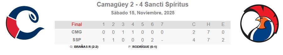 Este resultó otro reñido desafío, que enfrentó a Alex Guerra y Reidel Rodríguez desde el montículo. Si bien el zurdo espirituano se fue luego de lanzar tres entradas y un tercio, con el juego ya con abrazo a dos, el agramontino prosiguió la porfía con el relevista José Luis Brañas, hasta que en el sexto permitió las definitivas, para conseguir su primera definición en la Serie, en este caso negativa.