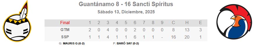 Sancti Spíritus dependió de un cuarteto de tiradores. El abridor José Martínez apenas sacó un out y admitió dos carreras. Fernando Betanzo lo reemplazó y completó cinco entradas, aunque permitió seis, una de ellas inmerecida. El más efectivo resultó Yankiel Mauris, que en dos capítulos y dos tercios no concedió libertades y se acreditó la victoria. Reicher Gómez se encargó del noveno sin contratiempos.