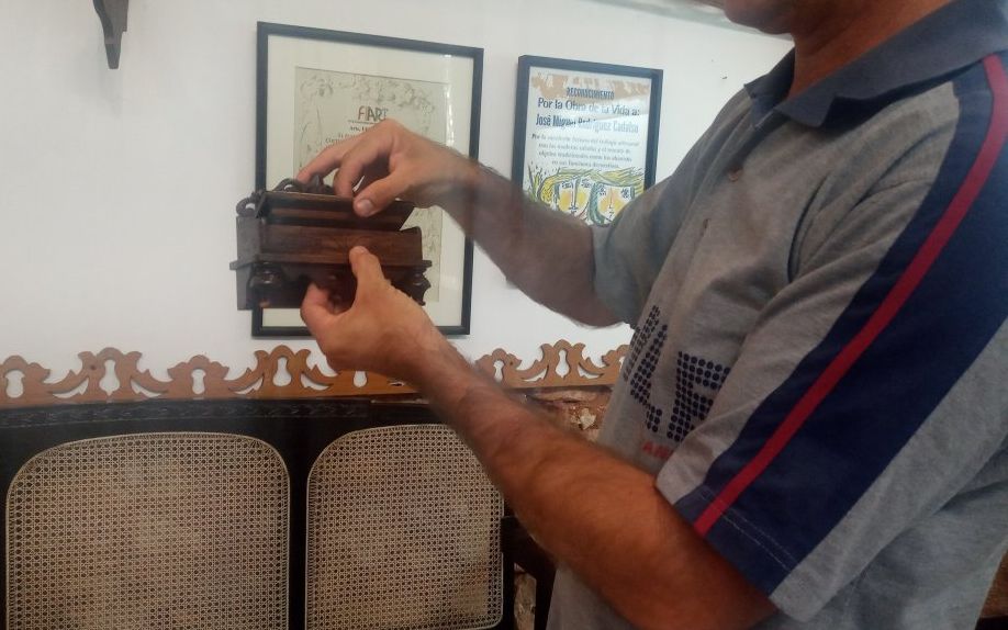El premio distinguió la excelente factura del trabajo artesanal con las maderas caladas y el rescate de objetos tradicionales en sus funciones decorativas de este artista, que cultiva el oficio de la ebanistería y se inspira en motivos y técnicas arraigadas a la cultura en la Tercera Villa de Cuba.