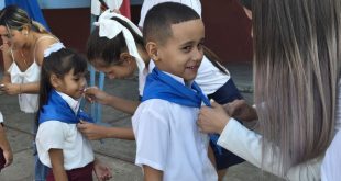 El tradicional atributo supone para los pioneros de toda Cuba una muestra de identidad, un símbolo que los llama a honrar el legado de la organización a la que pertenecen y refuerza los valores de unidad y compromiso con la Patria.
