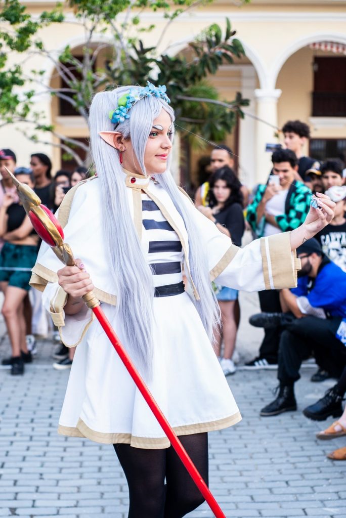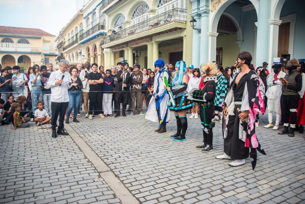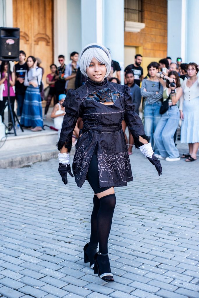 Así van estos otakus, entre la realidad de la isla y la fantasía de las pantallas donde construyen su propio “isekai” (mundo alternativo). Ellos no visten tanto con trajes importados, sino más bien con lo que sale de sus manos a golpe de creatividad pura: un kimono cosido con retazos, una peluca hecha de hilos teñidos, un sombrero de papel, una espada hecha de madera. Cada creación es un acto de amor y resistencia, un tributo que trasciende la mera imitación para convertirse en una reinterpretación caribeña, donde la esencia del personaje se funde con la chispa y el ingenio cubano.