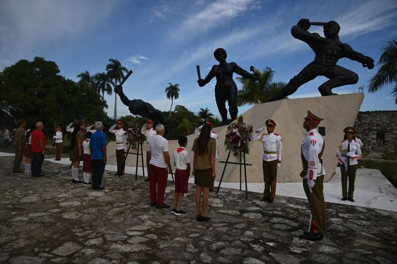 Ofrendas florales a nombre del General de Ejército Raúl Castro Ruz; de Díaz-Canel, y del pueblo de Cuba, se colocaron ante el Monumento al Esclavo Rebelde en área del museo de Triunvirato, para honrar la memoria de los héroes y mártires participantes en la Operación.