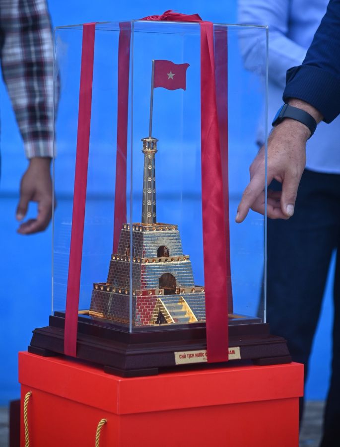 “En este lugar, ya donde está la escalinata, en estos momentos es el lugar donde reposan los restos de Ho Chi Minh; o sea, es el Mausoleo de Ho Chi Minh”, explicó el mandatario señalando a una de las partes de las réplicas.
