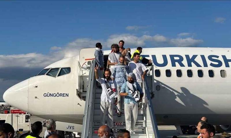 Un avión de la aerolínea turca Turkish Airlines evacuó hoy a activistas de la Flotilla de la Firmeza Global, tras su liberación por las autoridades israelíes, quienes los detuvieron durante una operación naval en aguas internacionales.