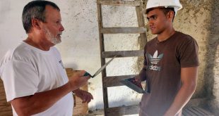 La albañilería le viene de casta a Yaimé Bedia Díaz. De su padre aprendió hacer la mezcla y tirarla con “gracia”. Después de más de un resane en casa y sin proponérselo, se adentró de lleno en uno de los oficios más antiguos del universo. Hoy cuelga con orgullo su título como albañil integral de restauración de la Escuela Taller Conrado Garau Gayá.