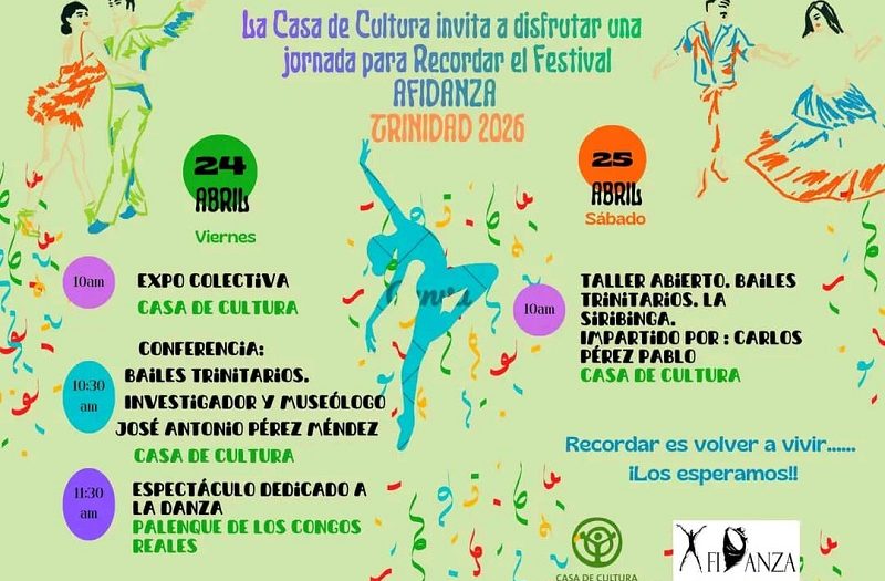El Festival Afidanza 2026 no está concebido con el realce de ediciones anteriores. Ante las extremas limitantes de recursos y exiguos presupuestos, la Casa de Cultura Julio Bartolomé Cueva Díaz, de Trinidad, ha organizado dos jornadas con propuestas muy precisas los días 24 y 25 de abril.