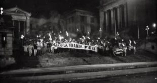 A la cabeza, una bandera cubana llevada por mujeres universitarias y de la segunda enseñanza. Detrás, el ejecutivo de la FEU en pleno. Las mujeres iban cogidas del brazo al frente de una multitud iluminada por las antorchas. Pero lo impactante era el grupo de 300 jóvenes perfectamente formados, que iban detrás de Fidel; jóvenes que el 26 julio de ese año asaltarían dos cuarteles del ejército de la tiranía.