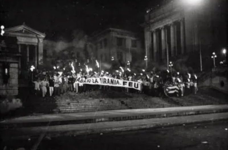 Luego del golpe de Estado del dictador Fulgencio Batista y Zaldívar, el 10 de marzo de 1952, Cuba entró en un período de incertidumbre política y represión. La Constitución de 1940 quedó en suspenso, las elecciones previstas fueron anuladas y el país se sumió en un clima de frustración y descontento. En ese contexto, un grupo de jóvenes comenzó a nuclearse alrededor del estudiante de Derecho Fidel Castro Ruz, quien ya despuntaba como figura de liderazgo dentro de la oposición. La Federación Estudiantil Universitaria (FEU) se convirtió en uno de los principales focos de resistencia contra Batista y la universidad, espacio de debate y efervescencia política, se transformó en el epicentro de las conspiraciones juveniles. En ese ambiente nació la Marcha de las Antorchas.